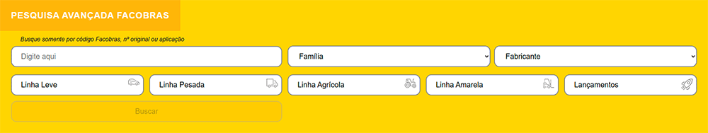 Outro destaque do novo portal é a Pesquisa Avançada Facobras, uma ferramenta robusta e inteligente que potencializa a busca por produtos. Por meio dessa funcionalidade, o usuário pode pesquisar por: